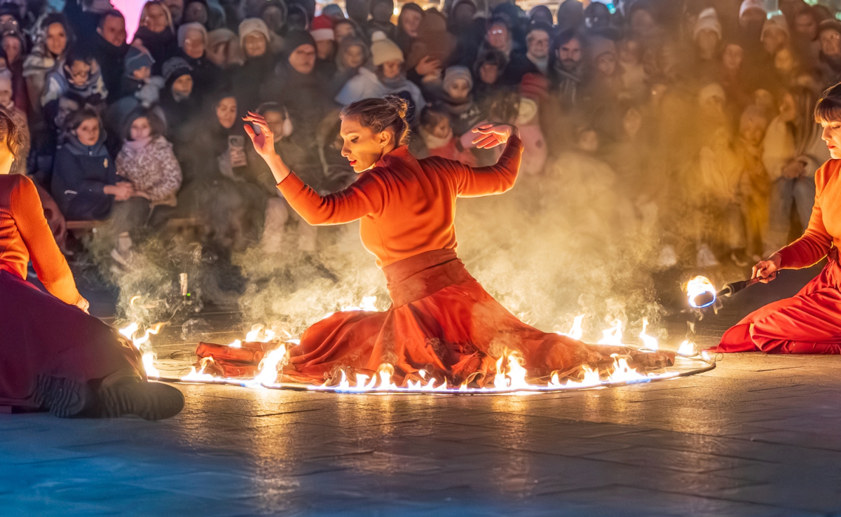 Des moments scéniques rythmés et captivants qui mêlent danse et manipulation du feu.
