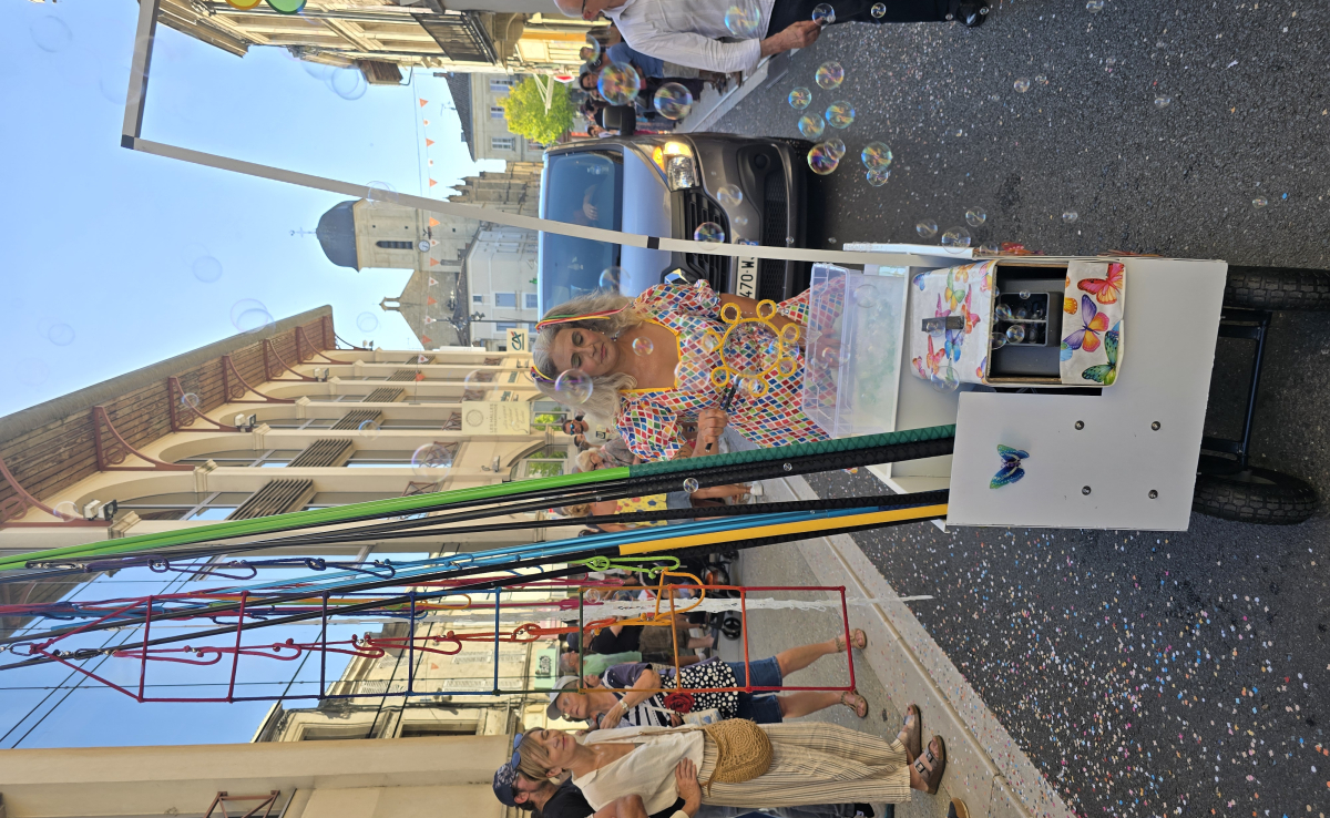 Fa-bulle se déplace de ville en ville avec son chariot de bulles de savon géantes !