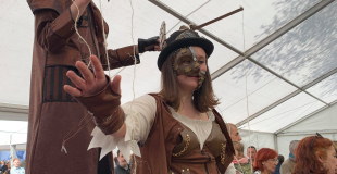 Après l'invention de sa machine à voyager dans le temps, Victor a eu l'idée de fabriquer quelque chose de plus impressionnant, et c'est chose faites! Voici Aliénor, une marionnette plus vraie que nature! Facétieuse, malicieuse, sympathique, 2m20, cette marionnette est tout simplement parfaite! Fier d'elle, Victor la fera déambuler dans votre évènement, mais serez vous assez observateur pour repérer la marionnette? Est ce réellement Victor qui contrôle sa création? Ou est elle capable de le mener à la baguette? Brisera t elle ses fils pour vivre sa propre vie? Pour le savoir, à vous de voir!!