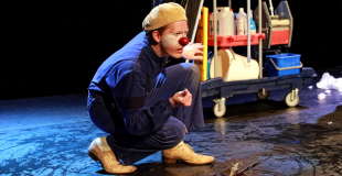 "Deux individus s’affairent à leur occupation quotidienne : NETTOYER. L’un balaie, l’autre frotte. Une tache tenace se profile et un rouleau se déroule. Ils se prennent alors au jeu, laissant apparaître images, idées, stéréotypes qui les interrogent sur leur place dans la société. A l’aide de leur chariot et ustensiles de ménage, les clowns s’expriment, dénoncent, vivent états, personnages et émotions sur leur condition."