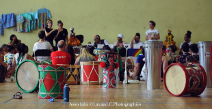 Outils utilisés: Rythmique vocale et chant / Tambours / Baguettes / Cloches / Chékérés / agbês/ Danse (gestuelle corporelle)