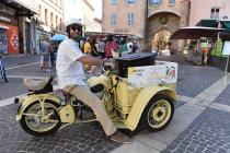 La Motosono ouvre le cortège des mariés en musique avec qualité et originalité. En effet, ce triporteur vintage de 1954 est équipé d'une puissante enceinte autonome qui délivre jusqu'à 125dB. C'est à dire une qualité de son, même dans les basses fréquences, qui porte jusqu'à 150 mètres et qui est calibré pour 150 à 200 personnes en plein air.
