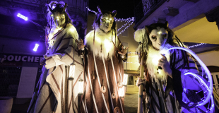 Une déambulation à trois échassiers inspirée des folklores traditionnels des montagnes,
