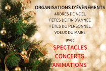 Pour vos prochains évènements (arbre de Noel, fête du personnel, animations de votre commune, marchés de Noël, voeux du Maire, anniversaire d'entreprise, ...), nous vous proposons des spectacles, concerts et animations de tous types.