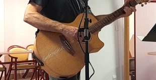 Je propose une douzaine de titres en m'accompagnant à la guitare avec ampli et micro. Je choisis les titres en fonction de l'ambiance et des souhaits du public. Environ une heure ( parfois au-delà... ) de bonne humeur et de partage. Je vais prochainement rajouter un pot-pourri de chansons populaires que j'interprèterai sur des musiques enregistrées afin que le public participe davantage au spectacle.