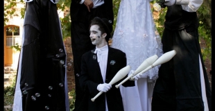 Déambulations, sketches, spectacle en fixe, improvisation sur un thème donné : tout est possible aux échassier Endimanchés !