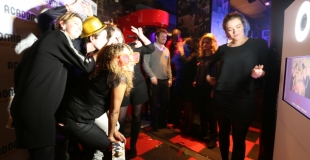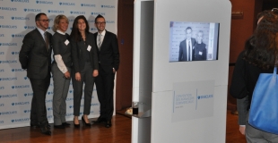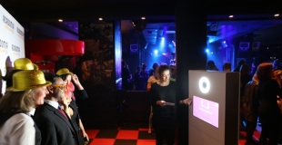 Le diaporama de la soirée est diffusé simultanément sur l’écran opposé, créant ainsi un deuxième centre d’intérêt autour de la borne.