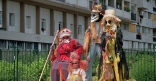 Spectacle "La Famille Vantail" Grany (la mère), Kunta (l’ainé) et Jack (le benjamin), famille d’épouvantails, sont liés à jamais par l’épouvante. Immanquablement replacés dans le bon sens du vent par Rumba (la... Par Compagnie Turbul dans Spectacles de rue